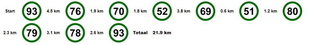 Vanaf de parkeerplaats gaat u naar knooppunt 93 (Brink). Vanaf daar volgt u de route. Let op: